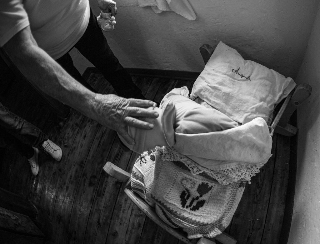 A settant’anni, Serafino continuava a lavorare nel bosco e Augusta lo aiutava a tagliare e trasportare la legna, “Non mi sentivo di lasciarlo da solo. Era anziano, ha lavorato tanto nella vita. Tanto ed io nella mia vita, ho fatto il lavoro sia da maschio che da femmina”.